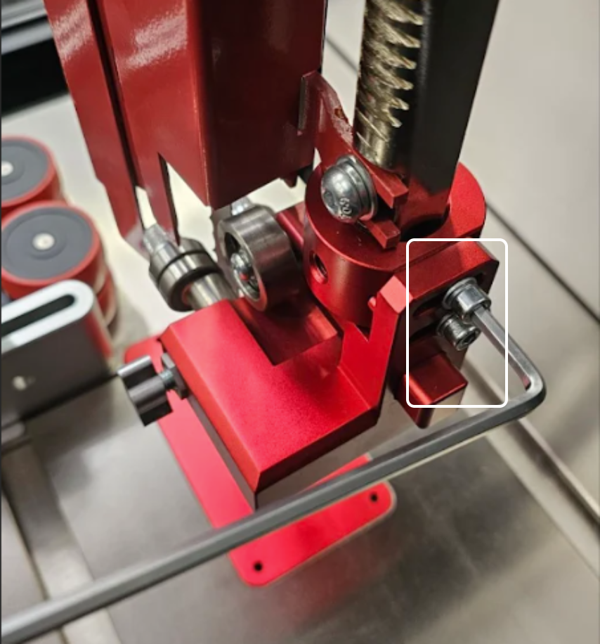 2. Next, loosen the two set screws on each side of the circular guide bearing bracket: